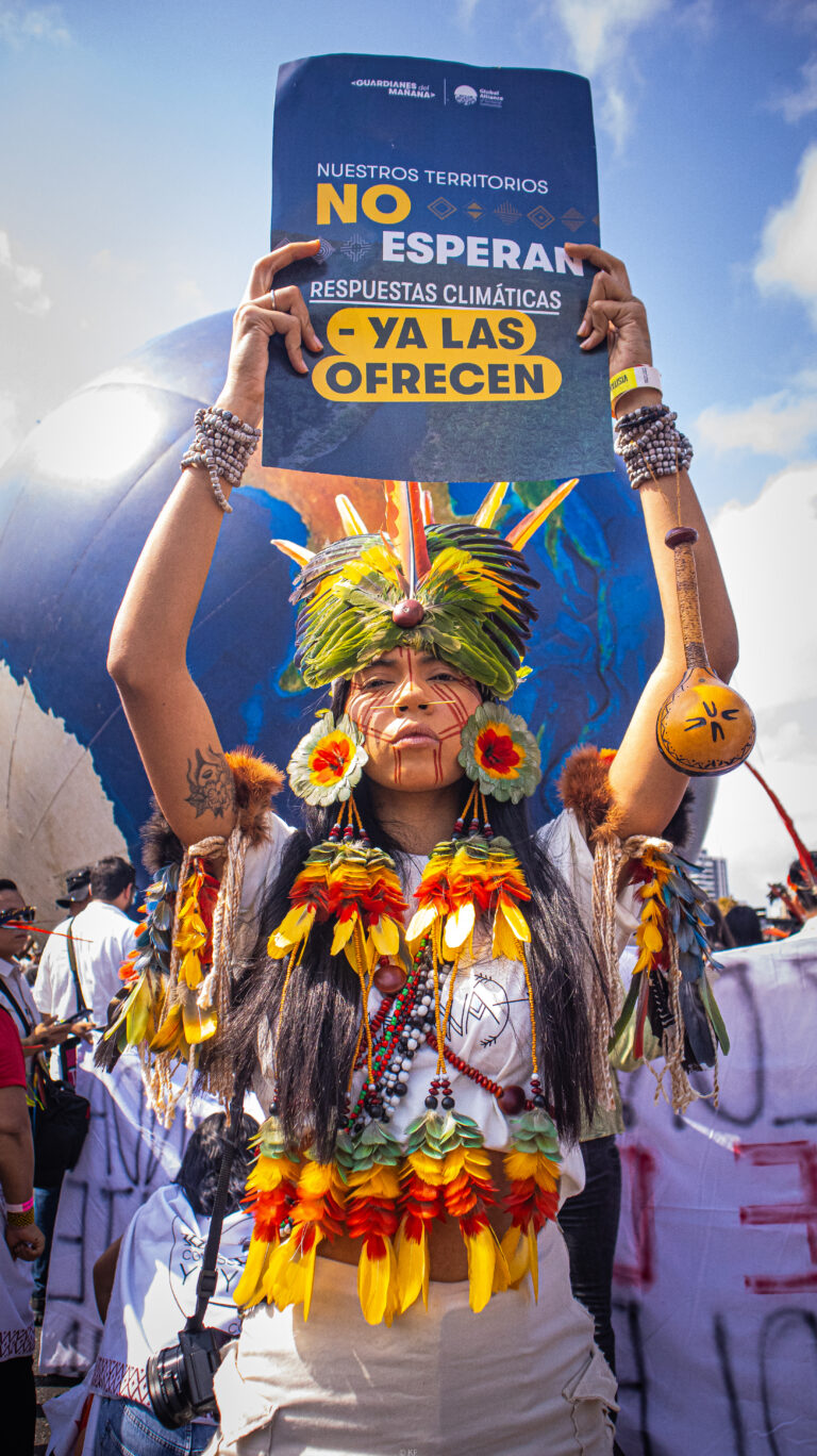 Durante más de 10 años, Movilizatorio ha unido fuerzas con los pueblos indígenas y las comunidades locales en la Alianza Global de Comunidades Territoriales para movilizar al público y a la opinión pública a través de la campaña Guardianes del Mañana. Destacamos el papel fundamental de las comunidades indígenas y locales en la protección ambiental. A través de acciones online y offline, hemos creado una plataforma que visibiliza a liderazgos y comunidades clave de Centro y Sudamérica, África e Indonesia. Este esfuerzo les permite ganar mayor visibilidad, poder y capacidad de negociación en espacios de toma de decisión a nivel local e internacional, y fortalece su participación en la lucha contra el cambio climático.